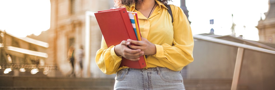 woman in yellow jacket holding red book 3762800