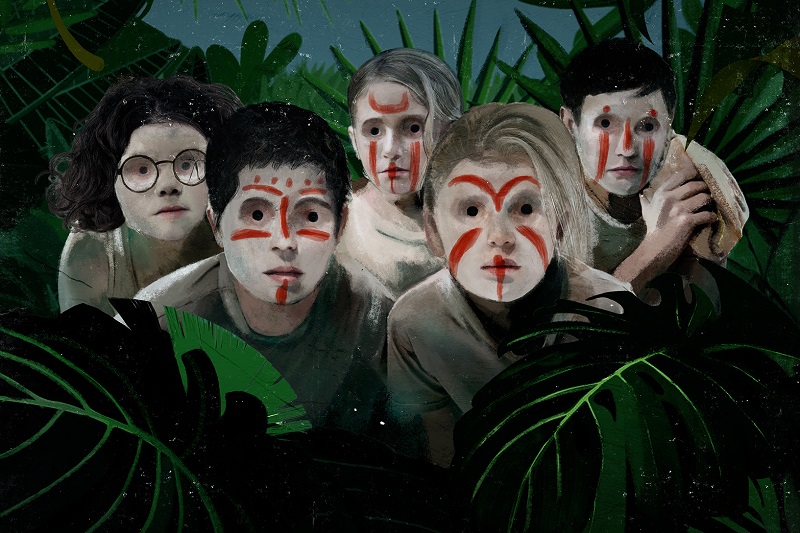 Deste modo, serão debatidas questões prementes como a ascensão de regimes totalitários, o conceito de maioridade e a perda da inocência, as visões conflituantes que poderão opor a civilização à selvajaria, a ordem e a lei à anarquia e ao caos, ou que, numa posição mais ampla, tenderiam a opor o bem ao mal. Em “O Deus das Moscas”, há um avião que se despenha numa ilha paradisíaca. Há um grupo de rapazes de colégios britânicos que sobrevive a esse acidente, quando fugia de uma (qualquer) guerra. Longe da supervisão dos adultos, começam por festejar, brincar, nadar nas águas cristalinas do ilhéu. É nesse ambiente exo?tico, luxuriante e tropical, conscientemente selvagem e sufocante, que o grupo procurará criar bases para a edificação de uma nova sociedade. À medida que os dias vão passando, sem sinais do mundo exterior, sem salvamento à vista, à medida que o frágil sentido de ordem começa a ruir, os jovens tornar-se-ão tribais e, depois de o corpo de um piloto cair de paraquedas na ilha, as suas inquietações ganharão contornos sinistros e bárbaros. O mundo paradisíaco das brincadeiras, dos livros de aventuras, acabará por dar lugar a um cenário assustador, a puerilidade dissolver-se-á na água do mar e os medos irão correr à solta, embrenhando-se na densa floresta tropical.