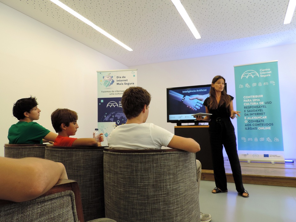 “A Inteligência Artificial não é apenas o que vemos nos filmes de ficção científica”, começou por explicar Ruth Ferrony, do Centro Nacional de Cibersegurança / Centro Internet Segura (CNCS/CIS): “Ela está presente em muitos lugares, no nosso dia a dia”. Aplicações e redes sociais, entre outras ferramentas digitais, acrescentou, são alguns dos espaços em que é possível interagir com soluções de IA, como algoritmos: “A nossa mensagem foca como tomar decisões conscientes na sua utilização porque a IA pode ser muito perigosa se não soubermos como funciona”.
