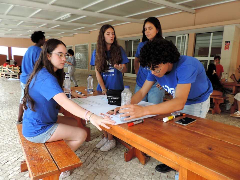 A primeira atividade do CIS Digital Camp teve como objetivo levar os estudantes a refletir sobre Inteligência Artificial. A partir de uma análise SWOT (Forças, Fraquezas, Oportunidades e Ameaças), os participantes puderam pensar sobre o impacto destas tecnologias nas relações humanas e no nosso quotidiano. O resultado foi depois partilhado em palco e trabalhado em grupo por todos os participantes.