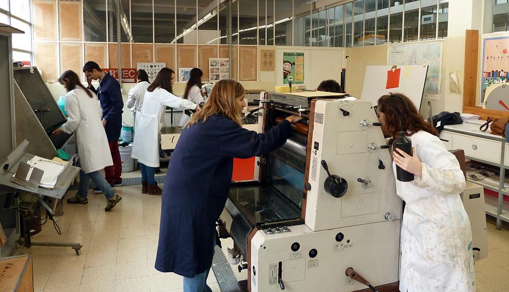 Trabalhar em oficinas de serigrafia, tipografia, gravura, tampografia ou encadernação é a realidade dos estudantes da licenciatura em Design e Tecnologias das Artes Gráficas no Politécnico de Tomar. “As aulas são lecionadas em regime atelier e as oficinas permitem a finalização dos objetos artísticos”, explica a diretora do curso, Maria João Bom, antes de concluir: “Isto faz desta licenciatura única no Ensino Superior público”.
