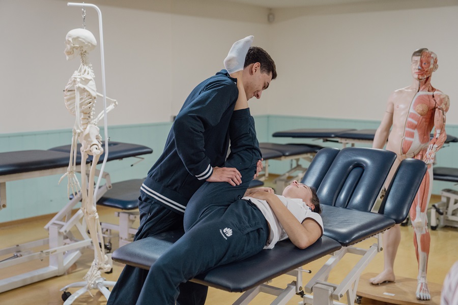 Os dois estudantes estão de acordo quanto à componente que mais lhes agrada na licenciatura em fisioterapia da ESS CVP Lisboa: a prática. E elogiam o contributo dos professores para criar “um ambiente tranquilo de aprendizagem” na escola, fazendo a ESS CVP “um local divertido para aprender, sem grandes complicações” e onde se criam boas relações com os colegas e com os professores.