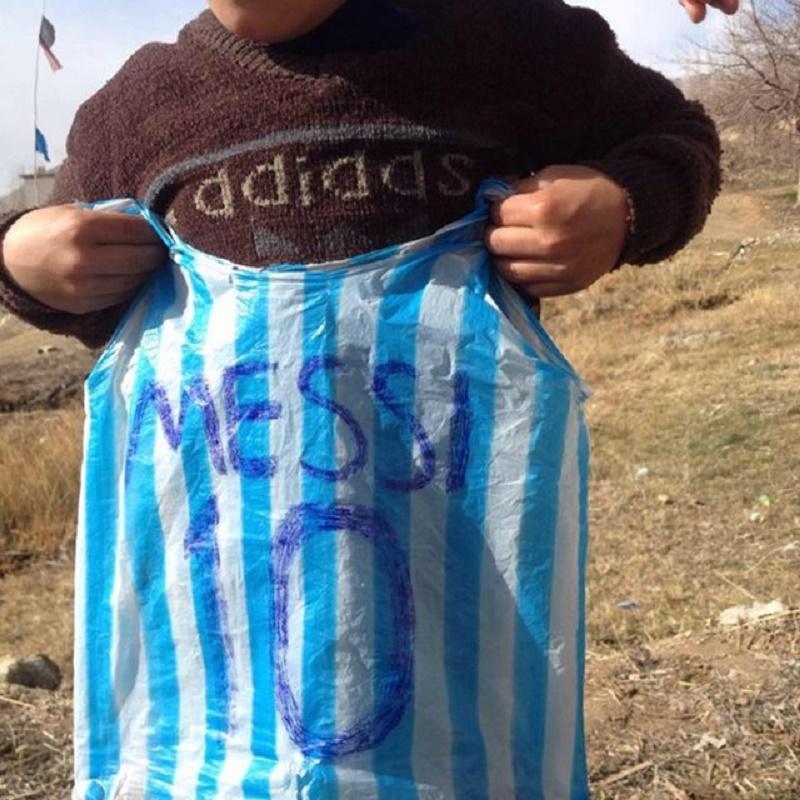 Foi o irmão, Hamayon, que decidiu criar a sua própria camisola. Usando um saco de plástico com as icónicas riscas azul-celeste da seleção argentina, Hamayon escreveu o nome de Messi e o seu respetivo número – o 10.
