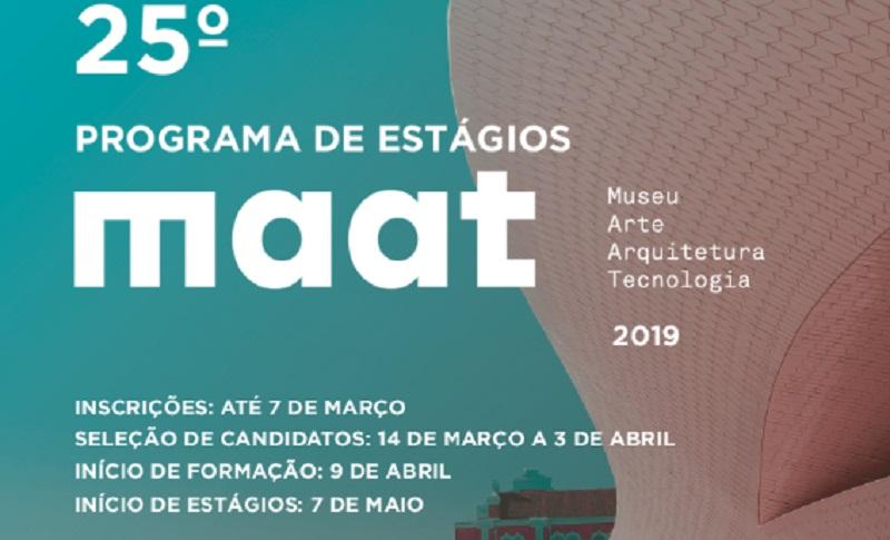 O Programa de Estágios MAAT destina-se a jovens com idades compreendidas entre os 18 e os 25 anos, que se encontrem a frequentar o ensino superior universitário (licenciatura, mestrado, pós-graduação), nas áreas de Ciências (Ambiente, Eletricidade, Eletrónica, Energia, Física e Química) ou Artes (Arquitetura, Arte Multimédia, Artes Plásticas, Ciências da Arte e do Património, Comunicação Cultural, Estudos Artísticos, História da Arte, Museologia, Produção e Gestão Cultural).