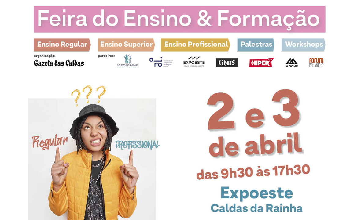 A “Feira de Ensino e Formação no Oeste 2025/2026”, culmina no encerramento do 2º período escolar para melhor se enquadrar na programação das escolas. Mantendo as condições da edição anterior realiza-se na Expoeste de Caldas da Rainha, evoluindo este ano para o pavilhão principal que estará preparado para receber as turmas dos alunos de 3º ciclo e secundário (com especial destaque para o 9º e 12º ano de escolaridade) dos concelhos da região Oeste e que mais uma vez será enriquecida com uma programação de colóquios e workshops.