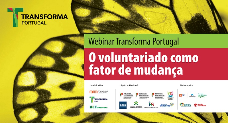 Com o objetivo de motivar os estudantes do ensino superior a desenvolverem os seus próprios projetos de voluntariado, o movimento Transforma Portugal realiza, nos dias 27 e 29 de abril, o webinar "Transforma Portugal: o voluntariado como fator de mudança". As duas sessões ocorrem entre as 19h e as 20h, sendo que as inscrições já se encontram abertas.