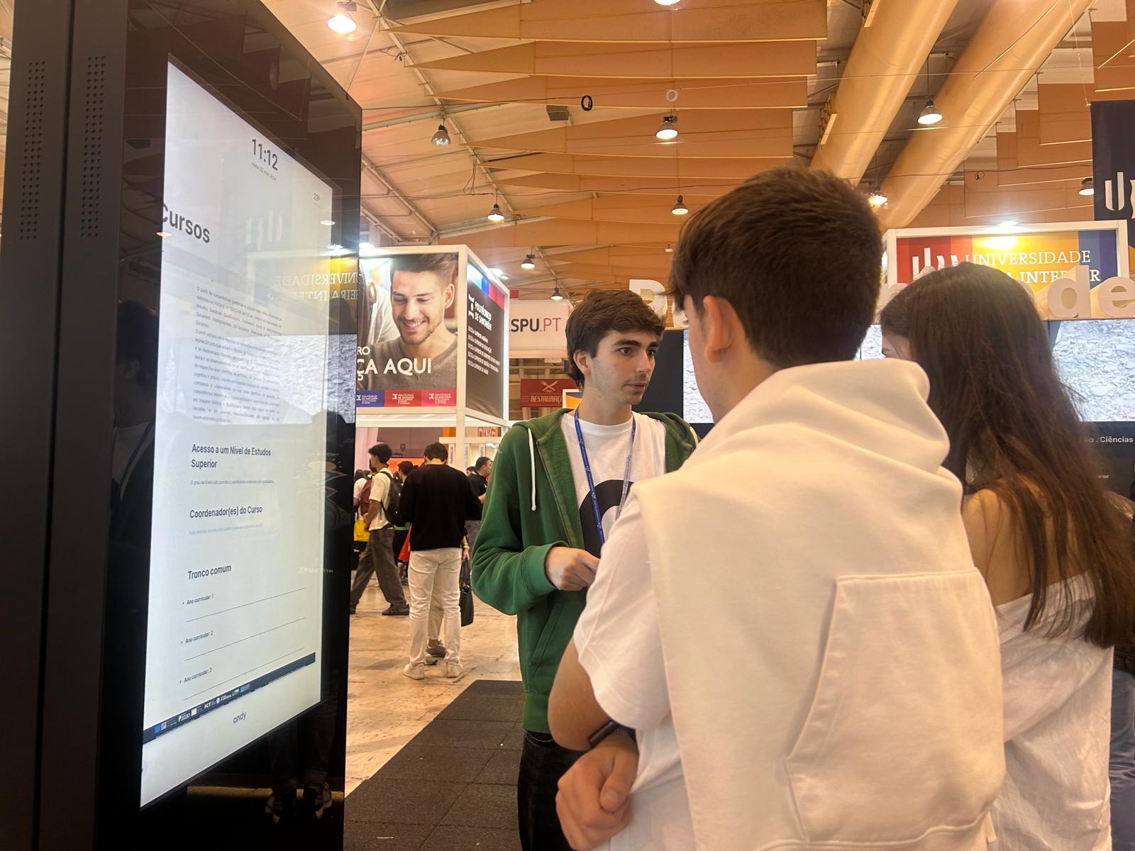 A aposta do Politécnico de Coimbra está na sua comunidade académica. “Temos no nosso stand uma série de profissionais e de estudantes que ajudam a esclarecer todos os visitantes”, confessa Ana Ferreira. Entre as suas dinâmicas, há que destacar o mupi interativo que permite aos alunos “conhecer o plano de estudos, as escolas e as infraestruturas”, sublinha a vice-presidente do Politécnico de Coimbra. Da mesma forma, na mesa interativa, existe um “quiz com questões sobre a instituição”, afirma Ana Ferreira.