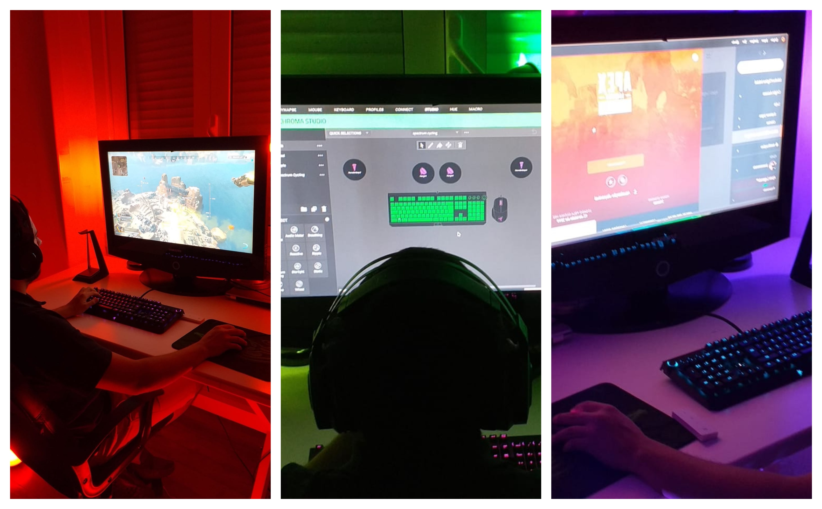 As luzes acompanham um perfil bastante subtil e, ao mesmo tempo, prolongam o ecrã. Desta forma, as luzes que se encontram atrás do monitor funcionam como uma extensão do terreno à nossa frente. Já as de trás fazem o mesmo, com o que se encontra atrás de nós. Um exemplo: no deserto, a nossa sala de jogo fica da cor da areia, alterando pequenas variáveis.