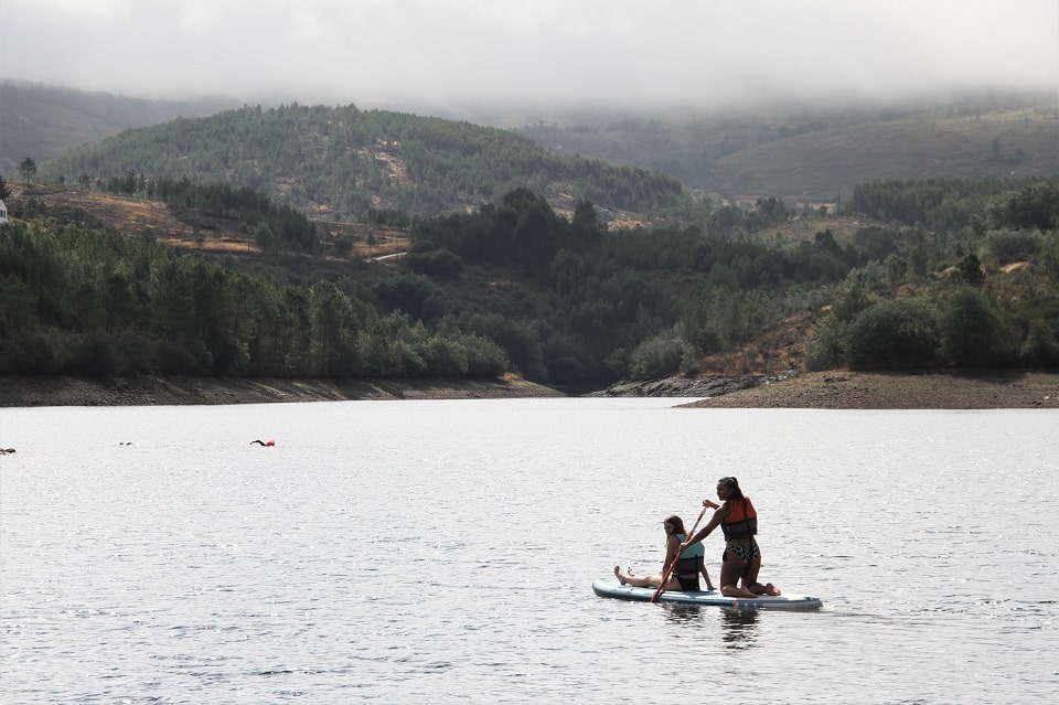 E se o espírito é importante para contrariar um dia raro por estes lados. Chover no Alentejo em pleno Verão? É possível. Aconteceu hoje. Mas nem o clima encoberto e as pingas miudinhas que teimam em cair estragam os planos da manhã. Com a serra no horizonte, o Parque Natural da Serra de São Mamede esconde o ponto mais alto que se pode encontrar a sul do Tejo. É a 600 metros de altitude, na Barragem da Apartadura, que Afonso e Henrique da Marvão Adventures têm tudo pronto para ocupar a manhã do grupo com uma caminhada, stand-up paddle e canoagem.