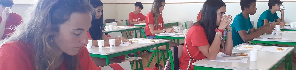 Numa sala de aula, puderam ter uma pequena experiência de Análise Sensorial, com uma prova de 3 colas e de 2 tipos de batata frita. O objetivo, segundo os professores Helena Mira e Luís Cunha, era simplesmente “despertar os sentidos para a prova”, no sentido de “a partir de agora, vão ter uma análise diferente dos alimentos”. Os refrigerantes e as batatas fritas foram escolhidos por serem produtos mais apropriados à idade dos jovens, até porque “os produtos são lançados em função de diferentes públicos-alvo”. Das 3 colas, a análise de cada grupo foi muito variada, com alguns a sublinhar o sabor doce de uma ou a quantidade de gás de outra, e sempre com resultados diferentes de quem gostava mais de qual e porquê. No final, Helena Mira explicou: “Assim, já podem justificar porque é que gostam mais de uma coisa do que de outra”.
