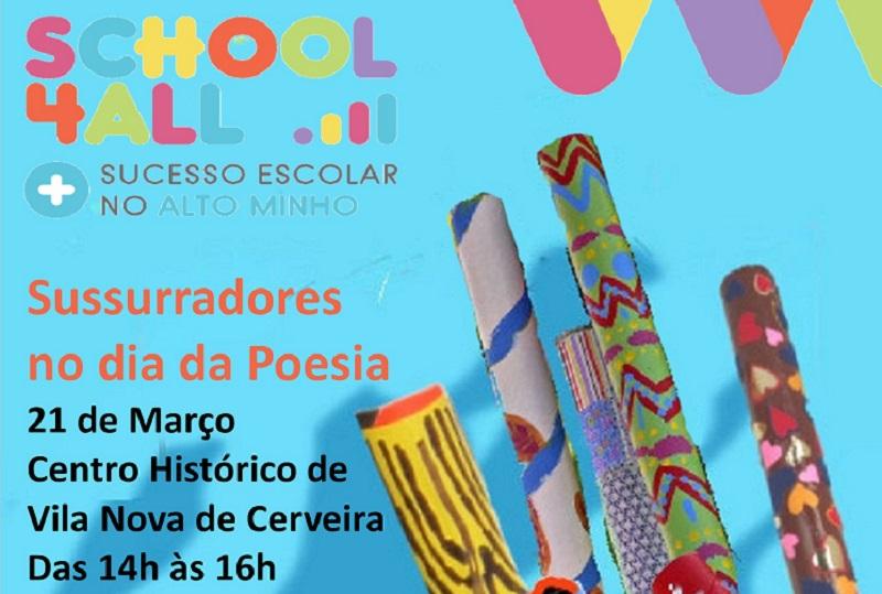 Após serem convidados a refletir e a transmitir para o papel os seus sentimentos e emoções, em forma de poesia, os jovens vão declamar publicamente os poemas da sua autoria, alternando com os de poetas reconhecidos, recorrendo a uma metodologia diferente: o sussurro. Para esse efeito foram elaborados ‘Sussurradores’, isto é, tubos de grande dimensão para captar a atenção das pessoas. A iniciativa “Alto Minho a Ler: Uma Estratégia Para o Sucesso Escolar”, integrado no projeto “Scholl4All Alto Minho”, promovido pela CIM Alto Minho, visa apoiar o combate ao abandono escolar pela valorização da leitura, associada à escrita e à criação, numa perspetiva inclusiva que desenvolva competências entre os agentes educativos, de modo a permitir mais e melhores projetos no futuro e permitindo rentabilizar recursos públicos comuns já existentes - bibliotecas, museus, escolas, profissionais, cultura da comunidade valorizando a leitura e as literacias. Os ‘Sussurradores’ Cerveirenses vão estar nas ruas, na quinta-feira, entre as 14h00 e as 16h00.