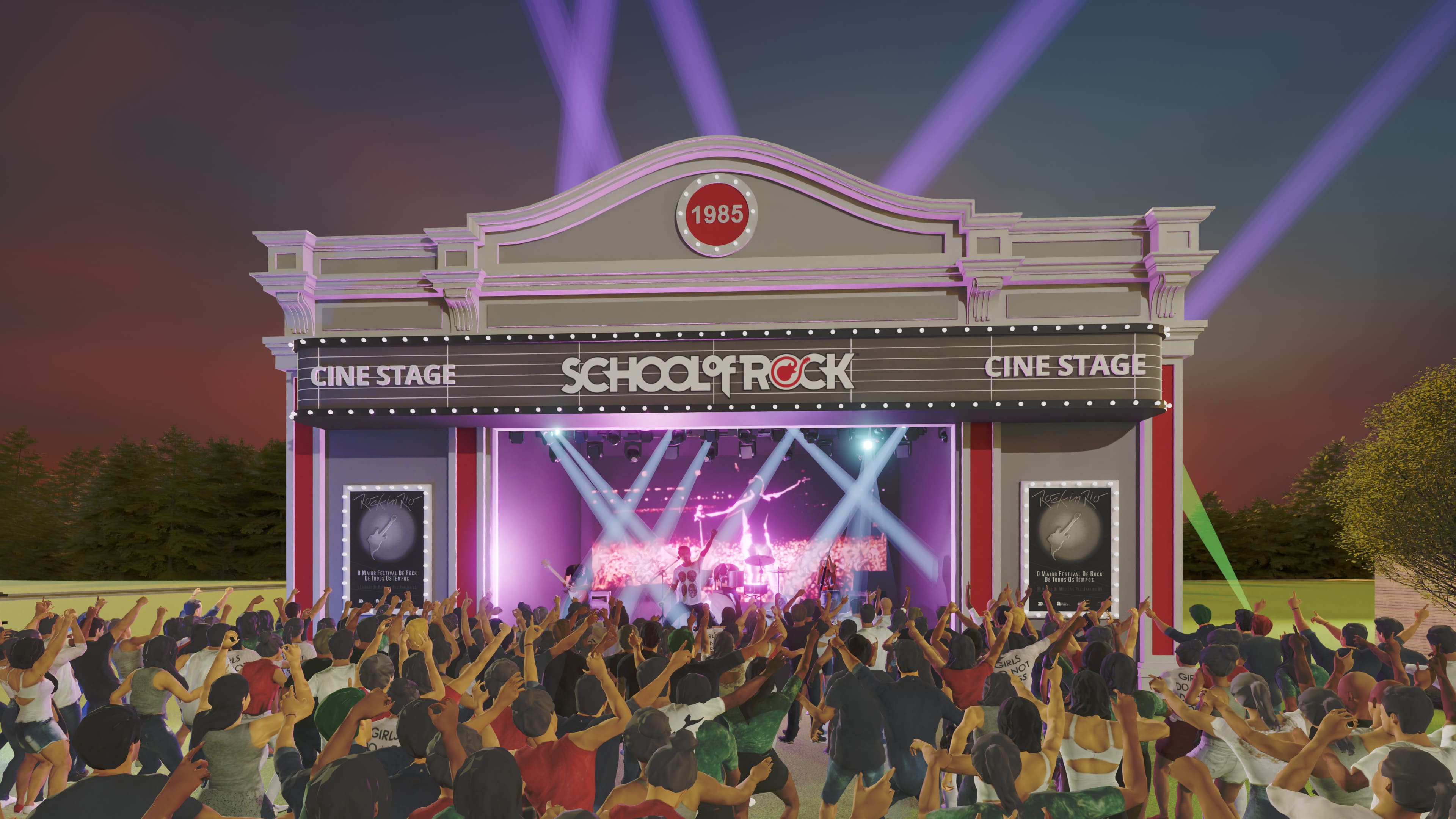 O School of Rock CineStage, um novo palco ao ar livre, estará também integrado na Rota 85. Ao longo dos quatro dias de festa, irá passar em grande ecrã um conjunto de vídeos sobre a história do festival, além de momentos icónicos de todas as edições do Rock in Rio Lisboa.