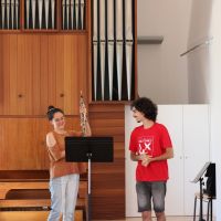 Já o grupo que se dirigiu à ESML participou em quatro atividades diferentes, orientadas por alguns alunos que se disponibilizaram para estar presentes. Começaram por assistir a um pequeno excerto de um ensaio de uma orquestra da Gulbenkian “que engloba alguns dos nossos alunos, para perceberem qual é a dinâmica de uma orquestra e o seu funcionamento”, disse-nos José Cedoura, dirigente intermédio na ESML. Os participantes interagiram ainda com uma aluna de ‘Direção Coral e Formação Musical’ e terminaram nos estúdios, onde alguns alunos do curso ‘Tecnologias em Música’ mostraram como é feita a manipulação do som, a partir de uma gravação em bruto.