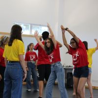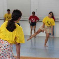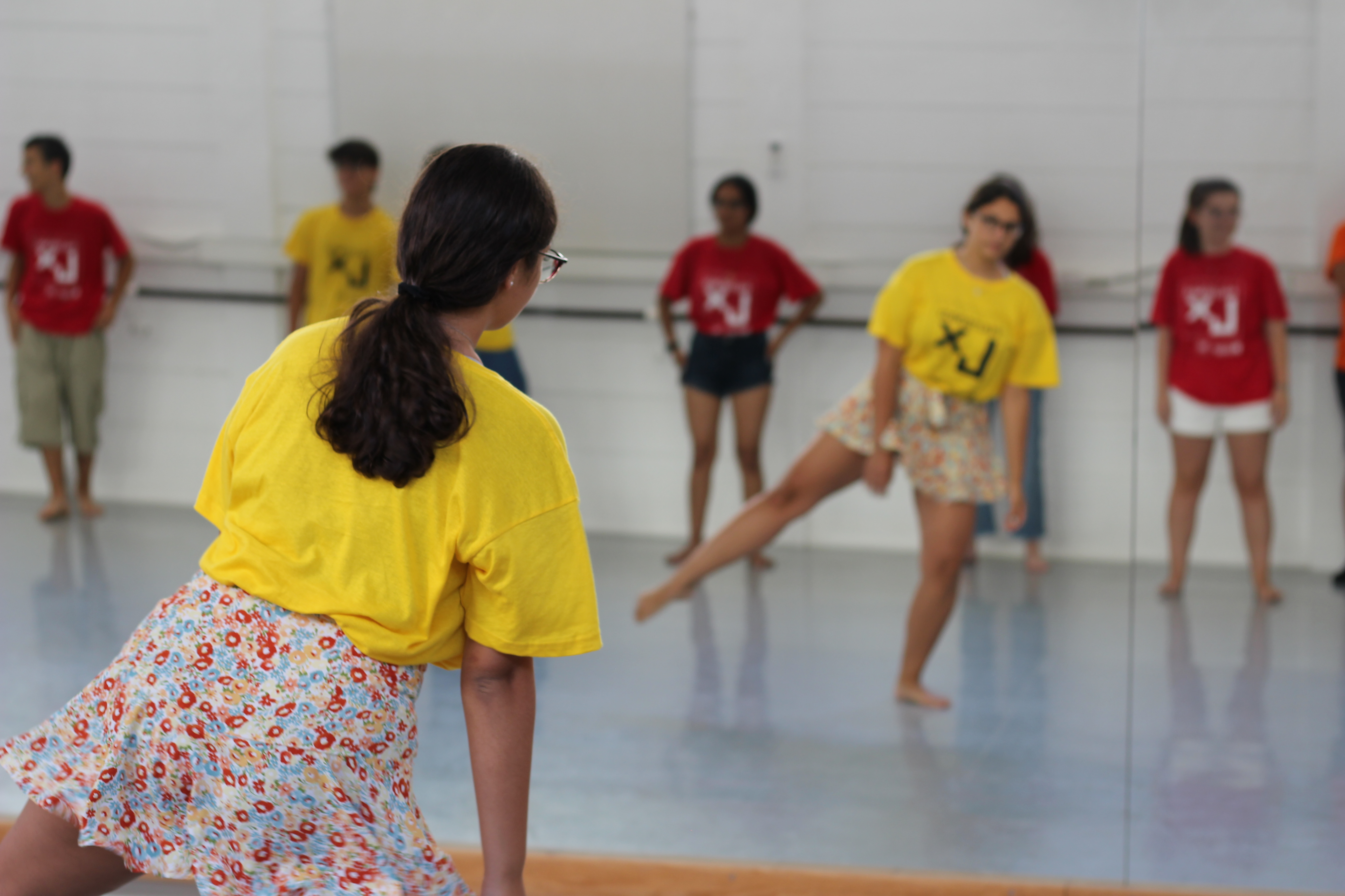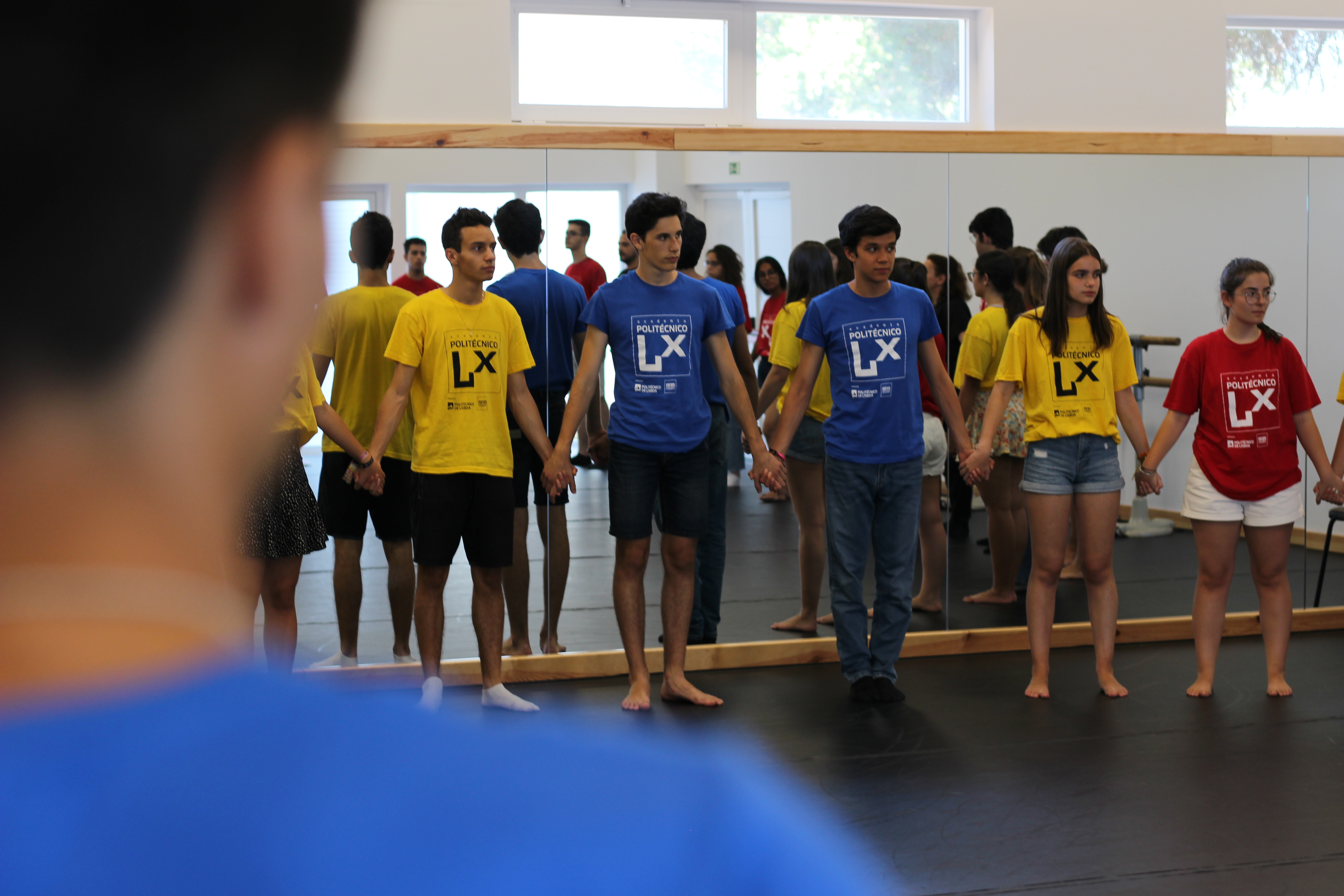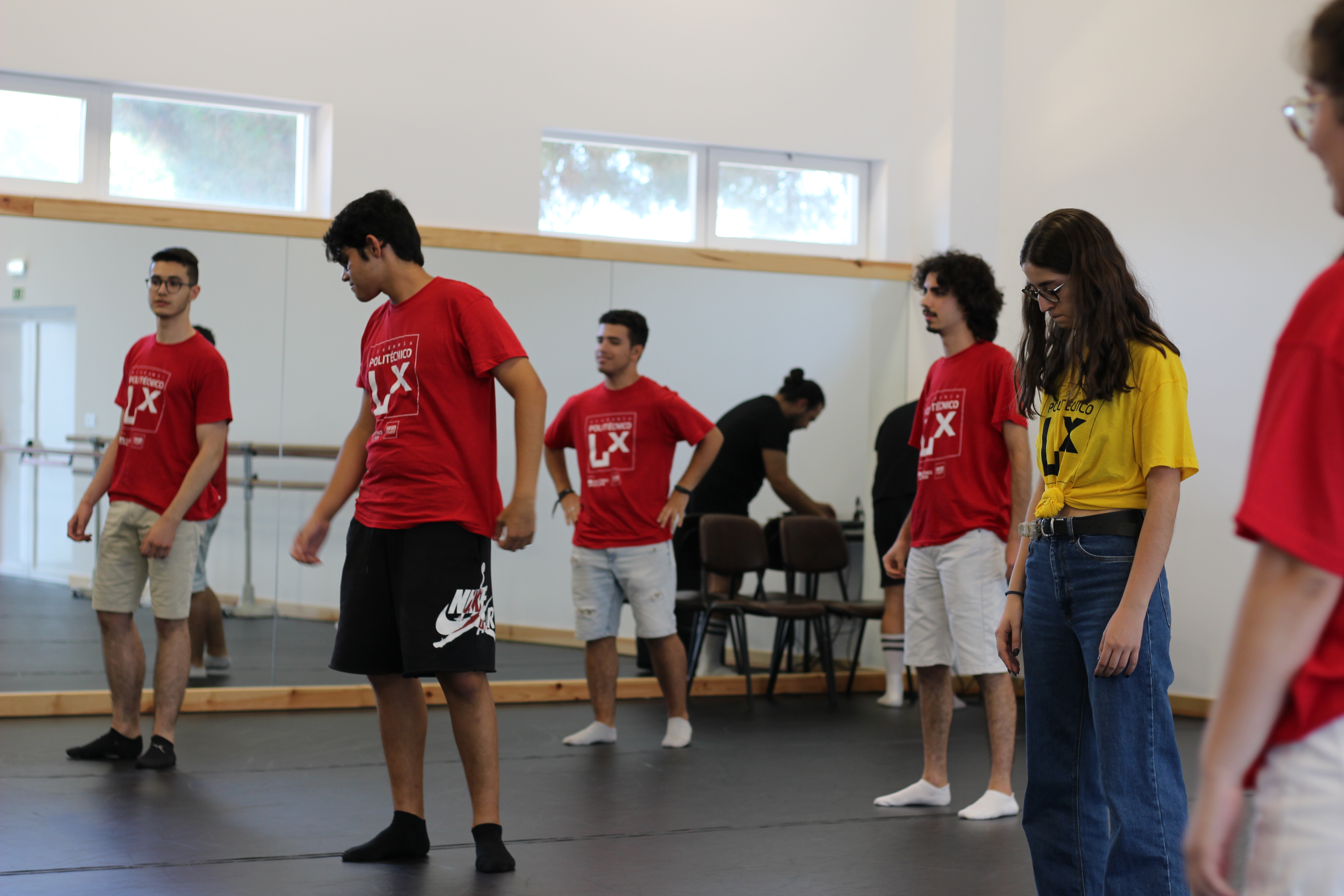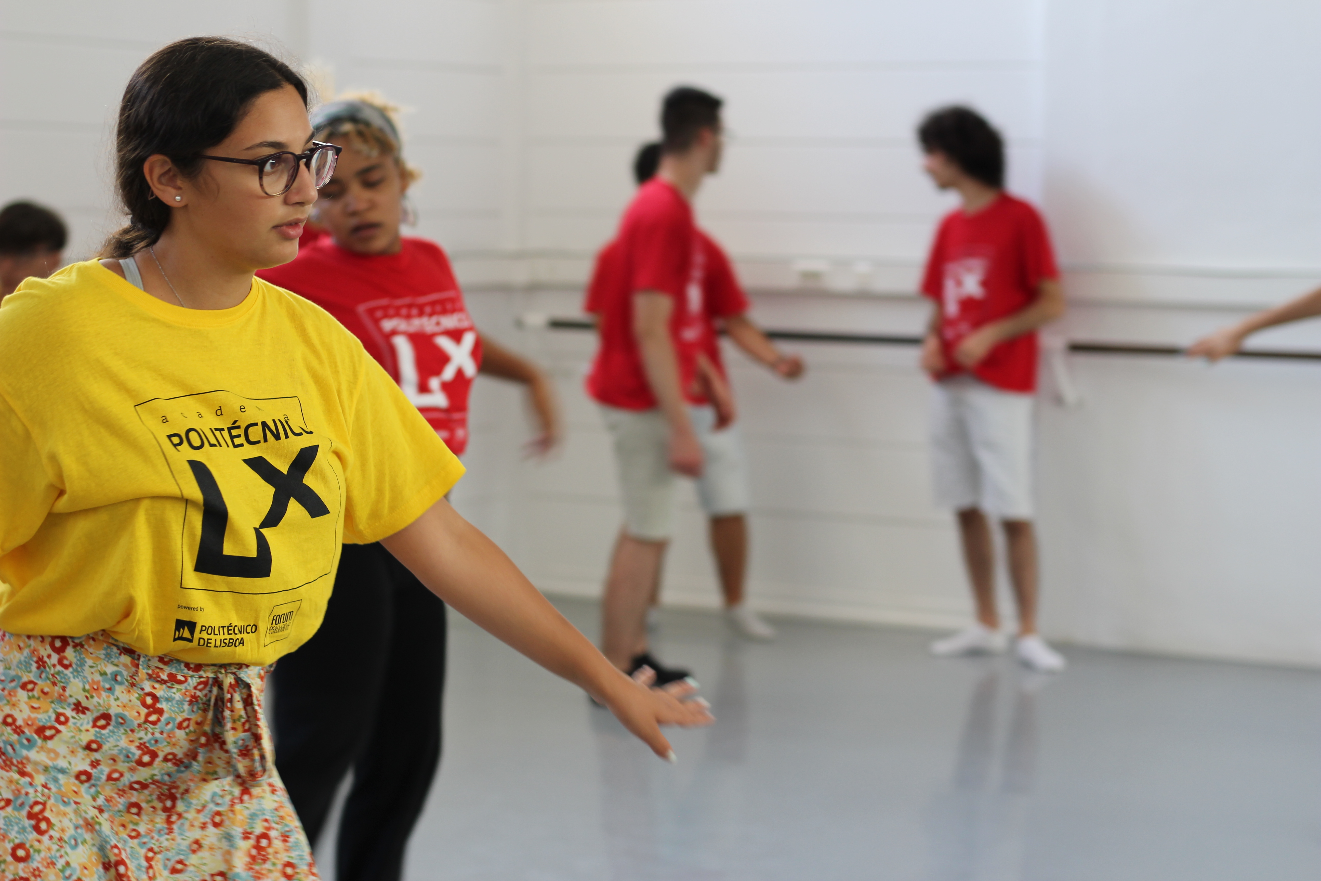 Terminada a sessão de boas-vindas, a professora conduziu os participantes para uma breve visita às instalações da Escola. A primeira a atividade ocorreu num dos estúdios, dinamizada alunos dos três anos, da Licenciatura de Dança. Os estudantes prepararam uma pequena apresentação, que deixou vários dos jovens completamente fascinados.