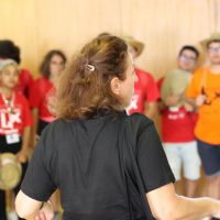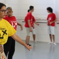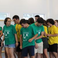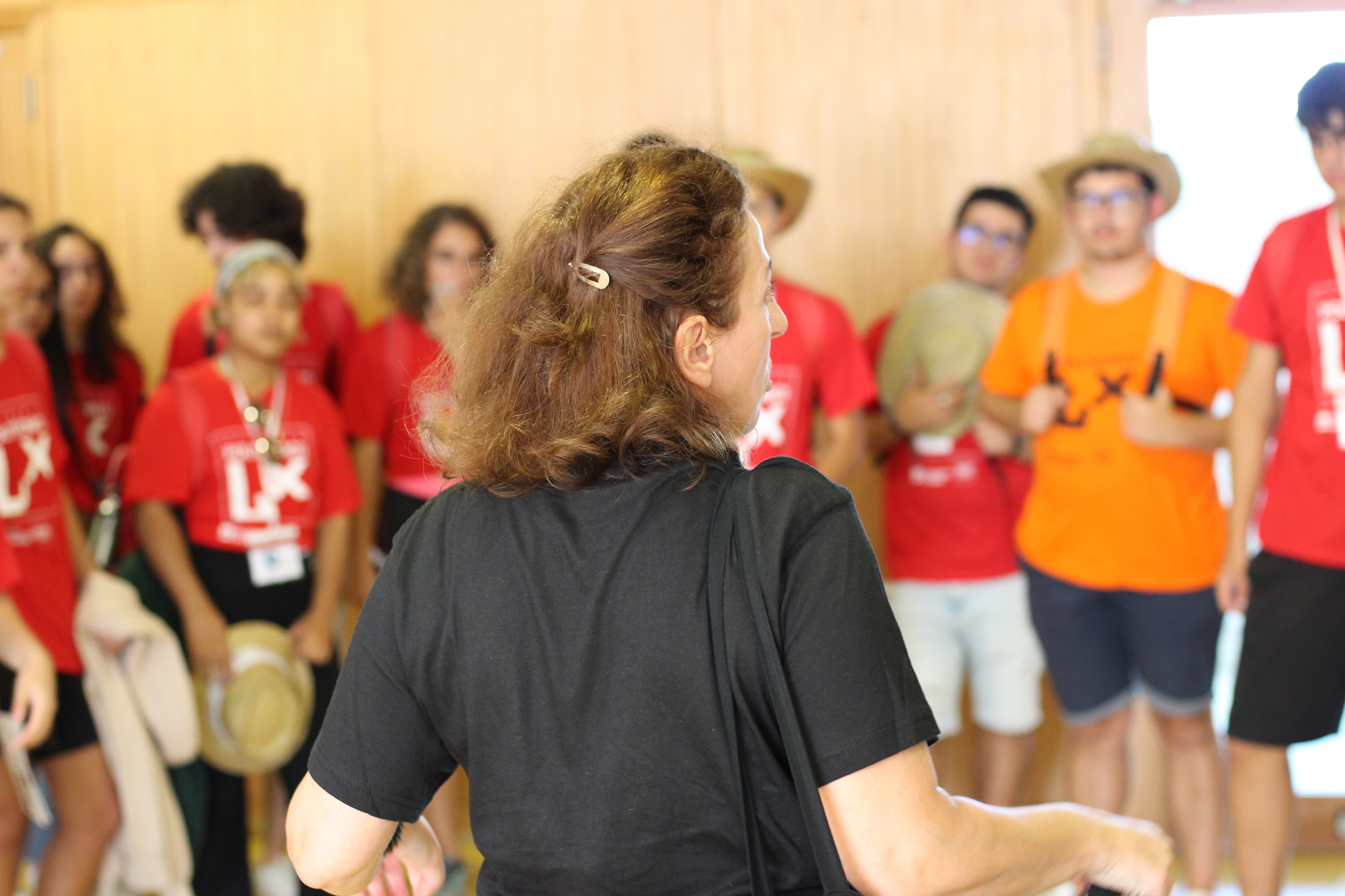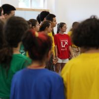 Chegou a altura de os participantes passarem à ação. Noutro estúdio, realizaram uma aula de dança com alunos do mestrado em ‘Ensino de Dança’. Após a aula, apresentaram aos restantes o resultado da peça que prepararam em grupo. No final, para concluir as atividades na ESD, a professora Ana Silva Marques proporcionou aos jovens uma sessão de relaxamento.