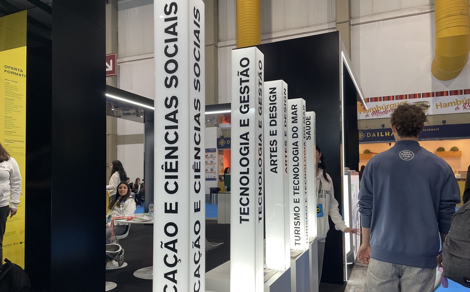 No stand do Politécnico de Leiria na Qualifica, há uma estrutura luminosa que chama a atenção de quem passa, representando as diferentes áreas do saber abrangidas pela oferta formativa desta instituição de ensino superior. “A estrela da nossa comunicação é sempre a nossa oferta formativa que é muito variada”, começa por explicar a técnica do Gabinete de Imagem e Comunicação do Politécnico de Leiria, Ana Salina, que acrescenta: “E também a região que representamos, que é dinâmica a nível cultural e económico”.