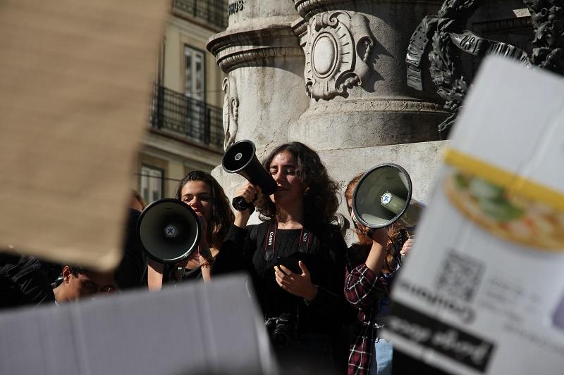 Nas escadas da Assembleia da República, Aloísio Baldé procura fazer ouvir a sua voz. Depois de lhe ser emprestado um megafone, diz aos que o rodeiam: “temos de lutar por um futuro melhor”. Aloísio veio de Loures, da ES Dr. António Carvalho Figueiredo, por “reconhecer que é necessário mudar”. “Este é o primeiro passo para chegar aos jovens e a toda a sociedade”, realça o estudante de 17 anos.