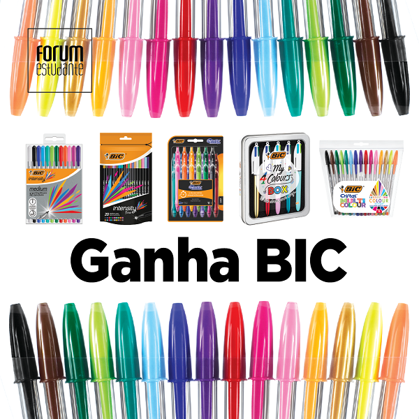 desde um conjunto de canetas de gel Gelocity 13 a um pack de 20 canetas de ponta fina Intensity fine 20. E ainda: um pack de 12 de canetas de ponta média Intensity médium 12, um pack de 15 canetas clássicas BIC Cristal com várias cores (Cristal Multicolour 15) e um Bic My 4 Colours Box (caixa metálica com 5 esferográficas: 3 BIC 4 Color Shine de cores clássicas e 2 BIC 4 Color Fun em tons vivos). Segue a nossa conta no Instagram e descobre as condições de participação deste passatempo,  clica aqui, consulta o regulamento e condições de participação, e participa.