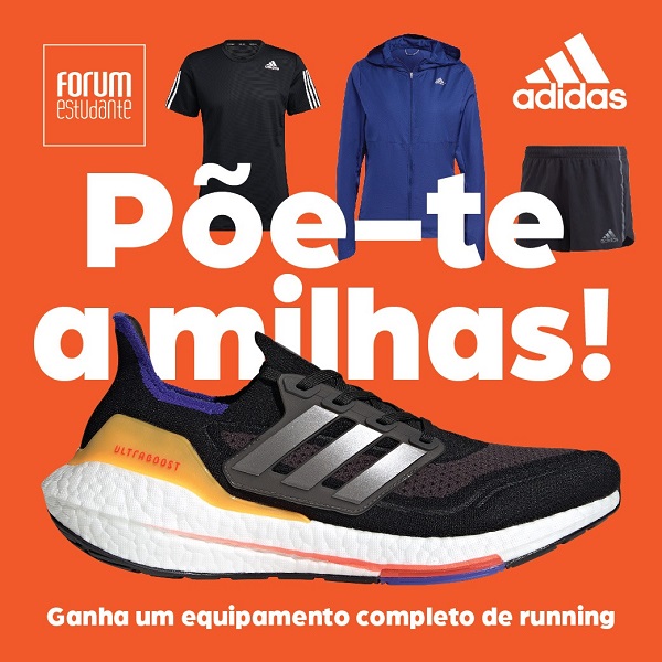A Forum Estudante e a Adidas oferecem-te 1 par de sapatos adidas Ultraboost, 1 casaco impermeável, 1 calção e 1 tshirt