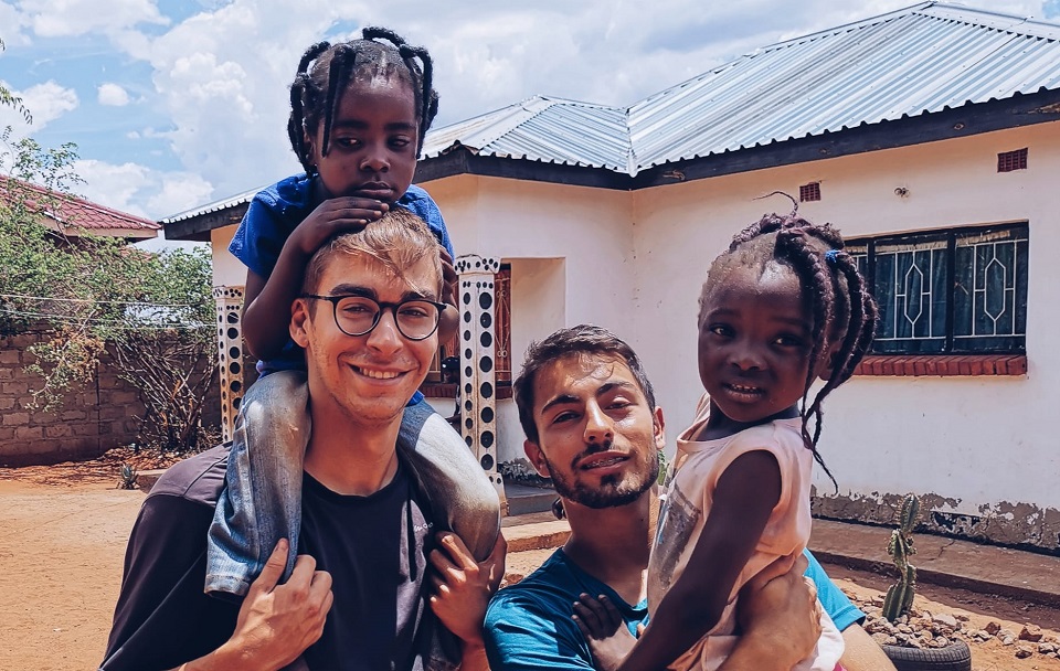 Pedro e Simão, durante uma ação de voluntariado em Livingstone, na Zâmbia